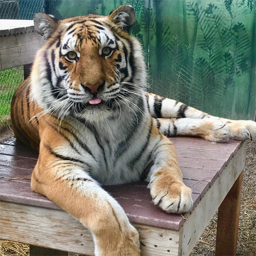 Koshka was born in November 24, 2007 as one of a litter of four. He and his siblings (Malenky, Sestra, and Tuga) were given Russian names – but while doing research, we came across the word Koshka which translates into ‘cat’ or ‘kitten.’ Despite being 650 pounds, he definitely likes to act like a kitten, making him live up to the perfect name. In fact one of his favorite activities is the Big Cat Adventure, where he gets hand fed by guests and gets to show off a bit for them.