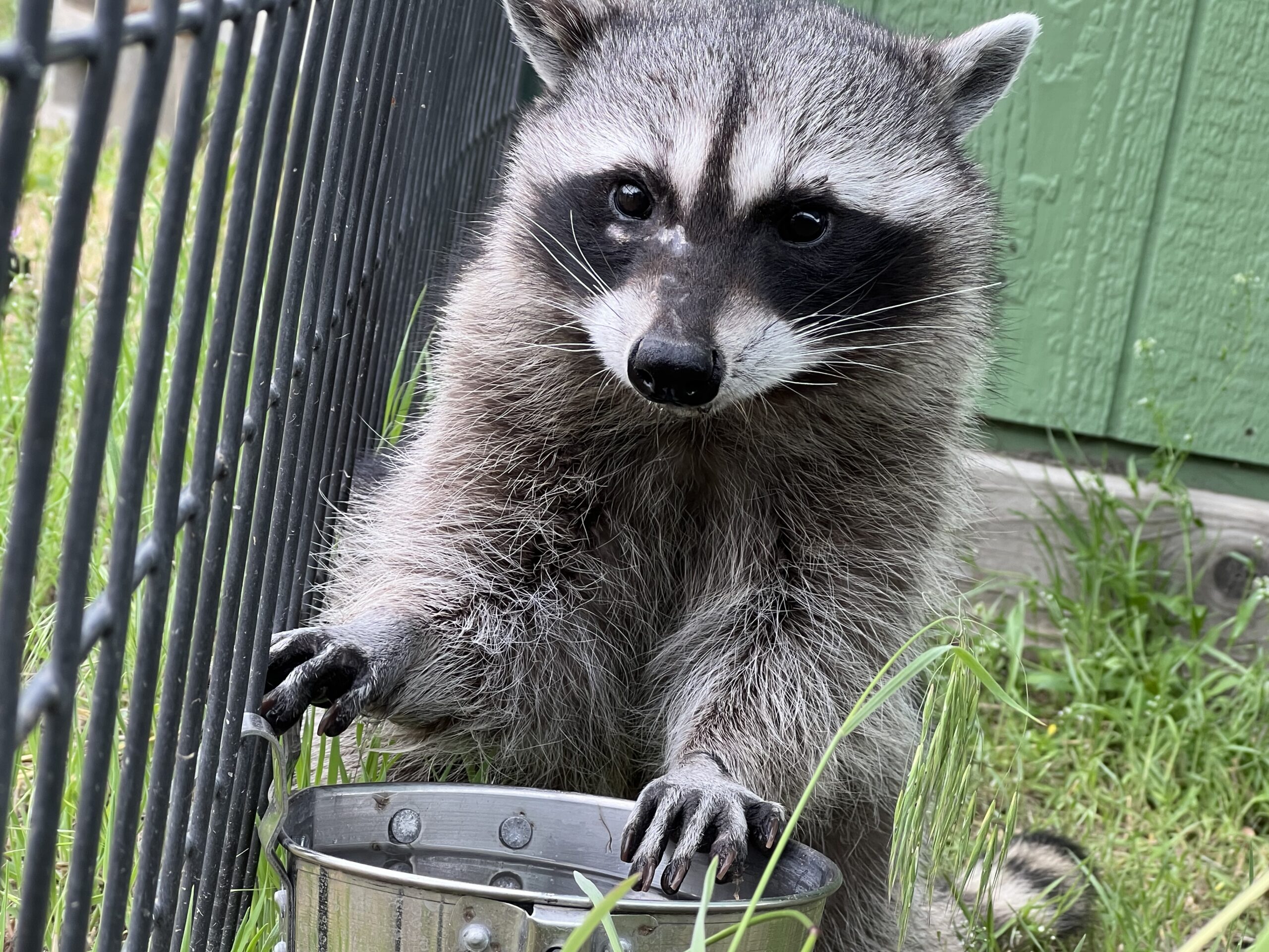 Billy is non-releasable due to his habituation; he came to us with a blanket and pillow, prefers dog food, and his survival instincts have been compromised, evidenced by his near-fatal encounter with another raccoon. This behavior underscores the lesser-known fact that raccoons establish a dominance hierarchy at a young age. Solitary raccoons, like Billy, miss out on this crucial socialization, making them vulnerable in the wild.