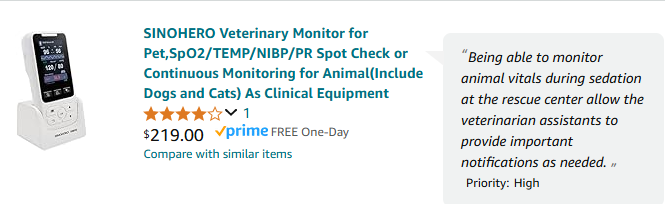 Items on our list that would make veterinary care easier for our onsite procedures.