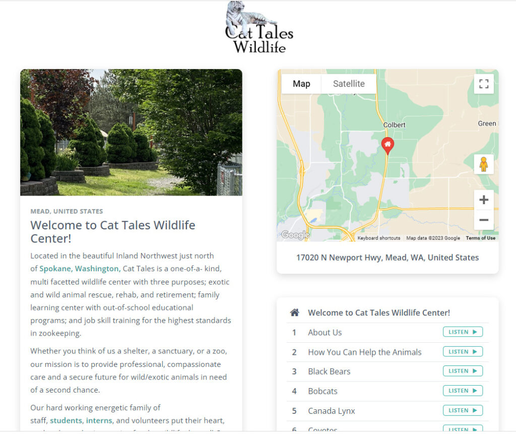 Learn about the Cat Tales Wildlife from the convenience of your computer or smart phone. It’s a wonderful addition to your walk about the Center while visiting the animals. Each stop tells the story of the different species you’ll see, along with myths and fun facts.