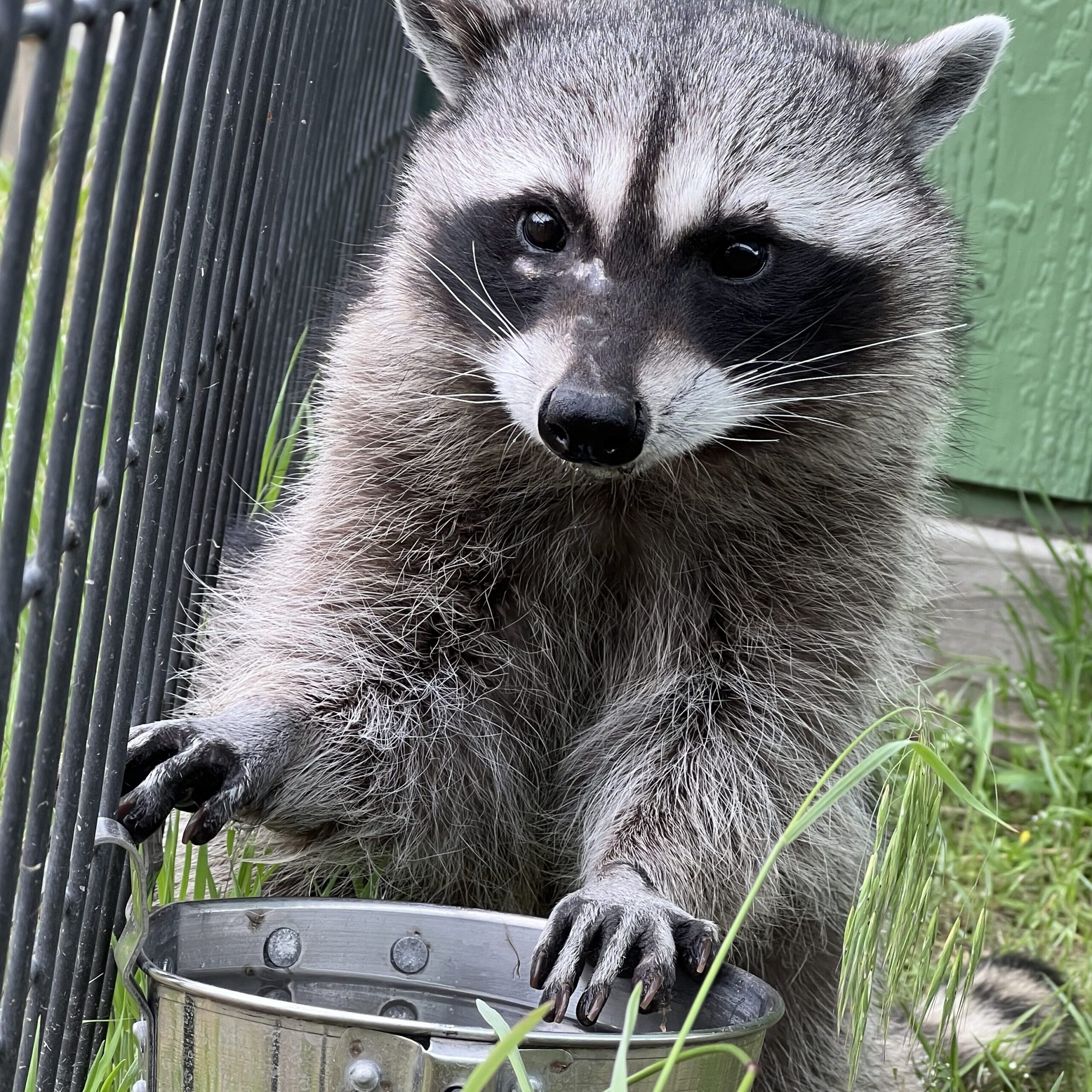 Billy is non-releasable due to his habituation; he came to us with a blanket and pillow, prefers dog food, and his survival instincts have been compromised, evidenced by his near-fatal encounter with another raccoon. This behavior underscores the lesser-known fact that raccoons establish a dominance hierarchy at a young age. Solitary raccoons, like Billy, miss out on this crucial socialization, making them vulnerable in the wild.